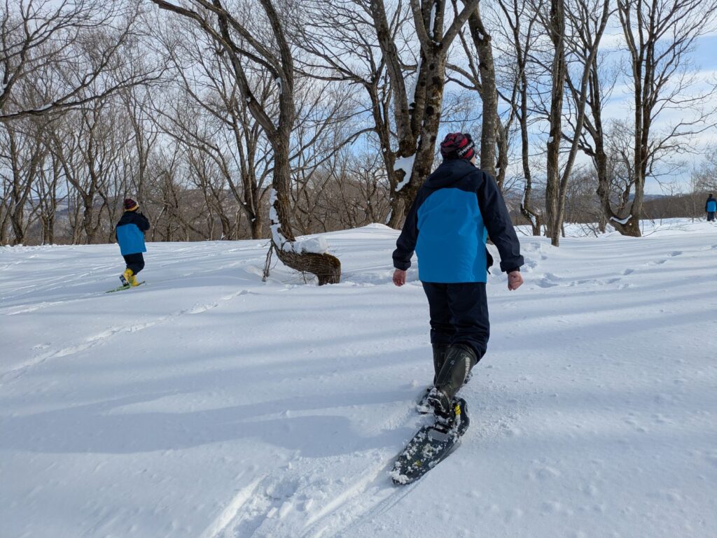 その後はスノーシューを履いて、いざプチトレッキングへ。 実は脳科学の世界では、「20分間自然に触れるだけで、ストレスホルモンが13%も減少する」と言われているそうです。