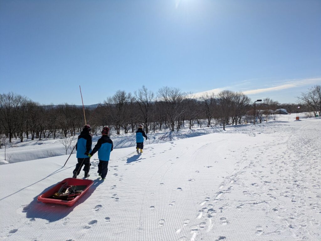 2泊3日の日程で行われたプログラムでは、子どもたちは様々な活動に挑戦しました。まずは真っ白な雪原での「基地作り」!! ふかふかの雪を前に、子どもたちは夢中で作業に取り組んでいました。 一言で「基地」と言っても、形はさまざま。「ひたすら高く雪を積み上げる子」「居心地の良さを追求して中を広げる子」「入り口の造形にこだわる子」。写真はアングルの都合でありませんが、それぞれの「個性」がキラリと光る、世界にひとつだけの基地が完成しました。